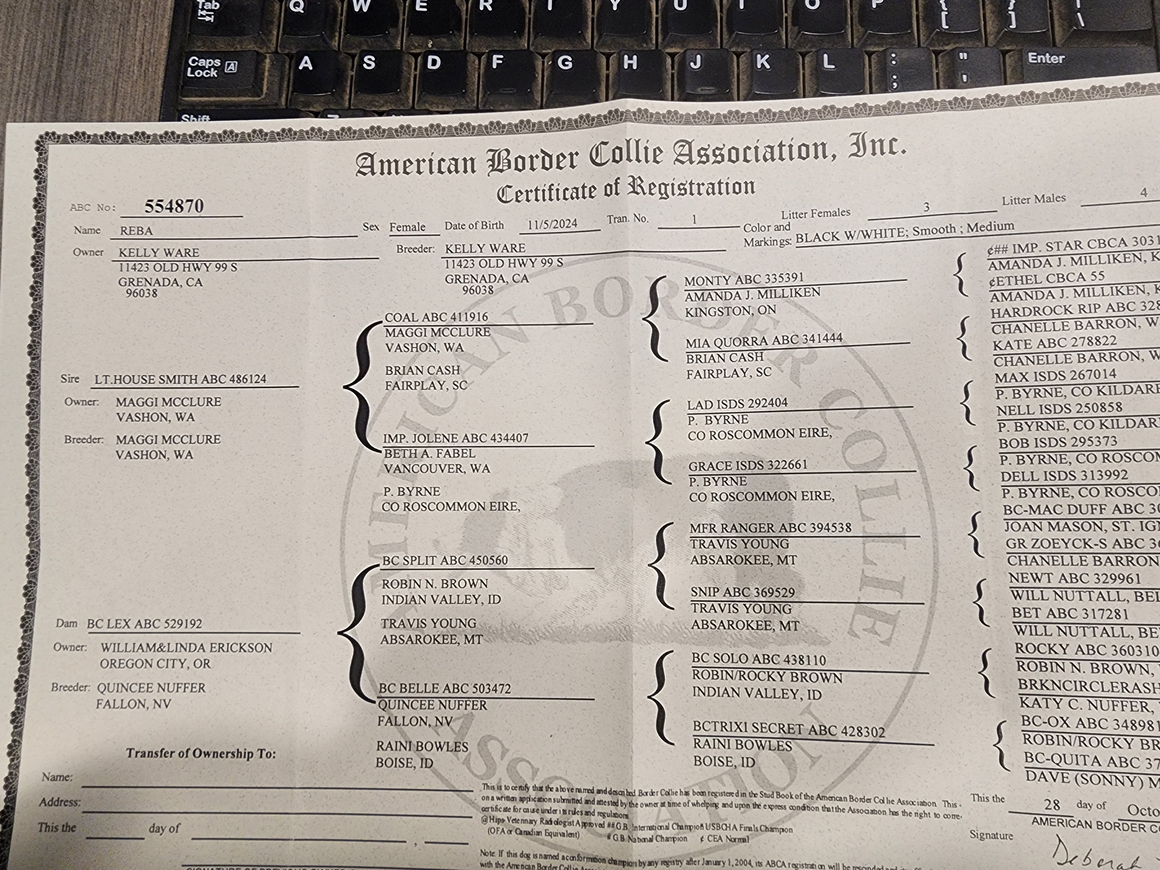 ABCA registered Dam is my partners dog Hope.