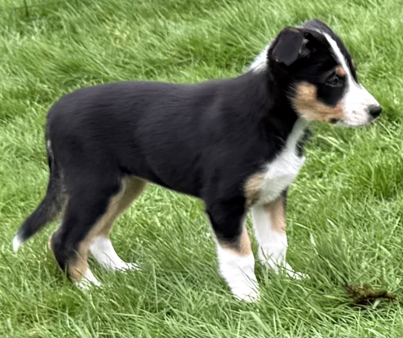 Black/White, Whelped May 23, 2023 (8 weeks) These girls are affectionate, socialized and very active, Dam: Kelly, daughter of Imp. Kinloch Kai (multiple winner of 80 Acres SDT) X Sire: Gino, son of Lyle East’s Mo (2018 USBCHA Cattledog Reserve Open Champion and the 1st Alternate to represent the USA at the 2020/2021 ISDA World Sheepdog Trial) X Imp. Kinlock Sia (daughter of Kinlock Levi, Wales, UK , World Welsh Team, Intl Supreme Finalist numerous times). Prefer active herding/trialing, sport, or performance homes. (Ad expires 10/25/2023) |